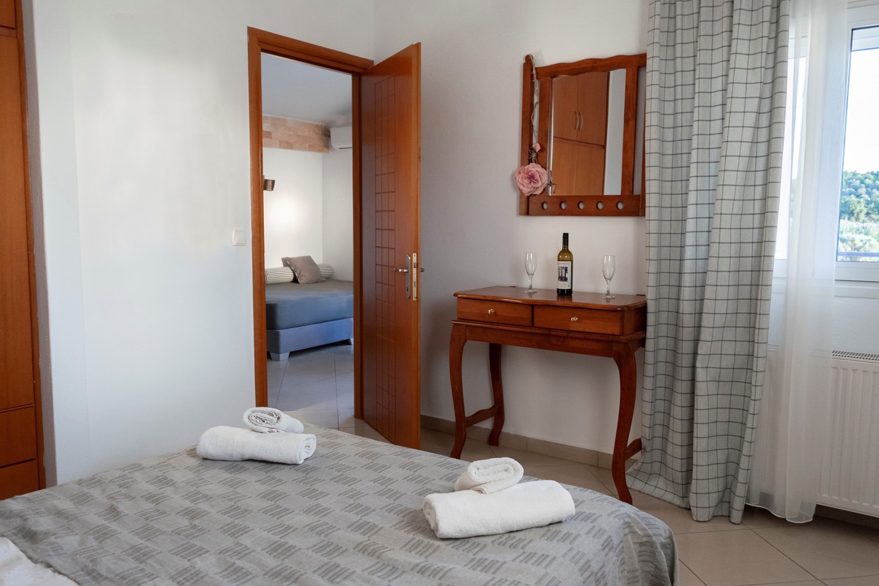 There is spacy bedroom and a living room with a sofa good enough for two young children. Top floor located with excellent evening breeze and romantique view to the sea. RENOVATED parlty in 2025-2026.